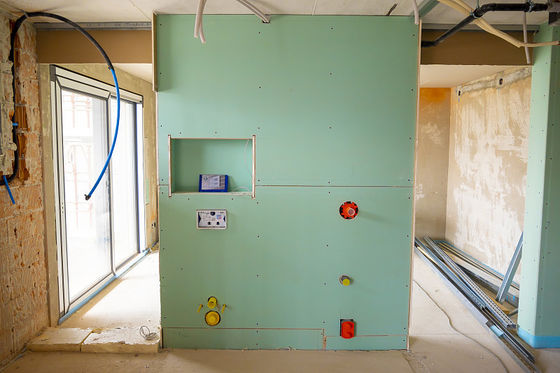 A placa de gipsita do à prova de água é projetada resistir o crescimento do molde e do oídio e pode suportar a exposição à umidade sem deteriorar-se. Contudo, não é projetada ser completamente impermeável e não deve ser usada nas áreas que estarão no contato direto com água, tal como tendas de chuveiro.