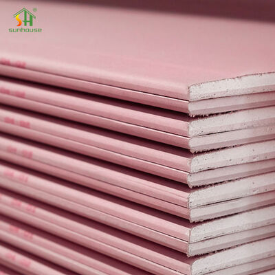 Placas de gesso resistentes ao fogo:Aparição rosa, feita com gesso de construção, materiais leves, fibras inorgânicas ignífugas e aditivos.